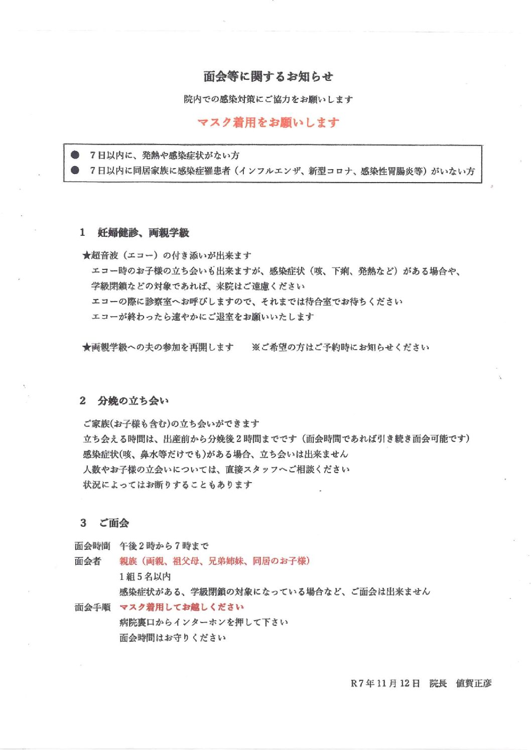 - img20251114_13412029 産後のお母さんの体調等を考慮してのご面会をお願い致します。...