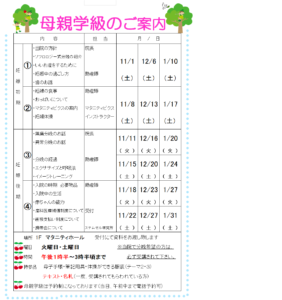 11・12・1月の母親学級のご案内