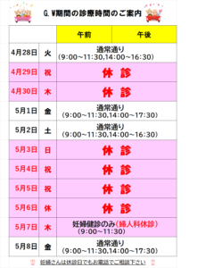 ※当院の妊婦さんはお休み中も対応いたしますので