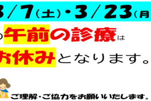 3/7㈯3/23㈪の診療について