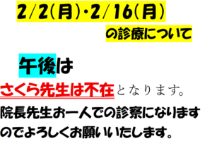 2/2㈪と2/16㈪の診療について