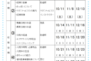10・11・12月の母親学級のご案内